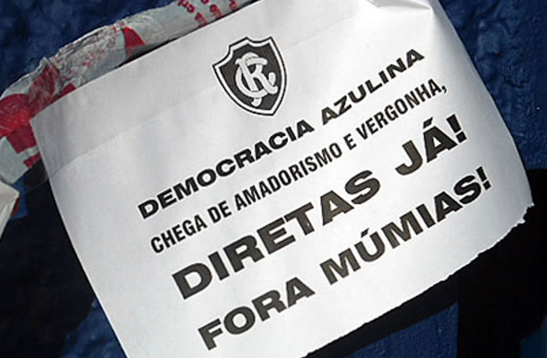 Além de ovos, os torcedores cobraram eleições diretas no clube. No local foram deixados papeis com os dizeres ‘Fora Múmias! Eleições Diretas”.