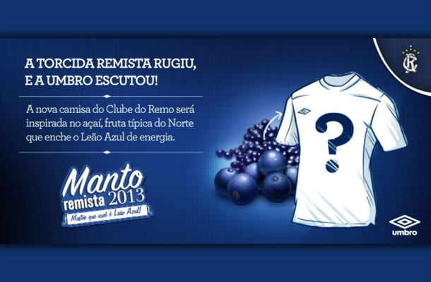 “A nova camisa do Clube do Remo será inspirada no açaí, fruta típica do Norte que enche o Leão Azul de energia”, divulgou a empresa através de uma publicação no Twitter e também no Facebook.