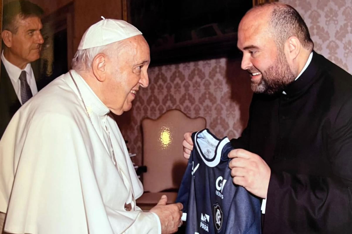 O Papa Francisco recebeu na última segunda-feira (27/06), uma camisa do Clube do Remo. O Santo Padre foi presenteado com o uniforme do Leão pelo padre Plínio Moraes Pacheco, pároco da Paróquia Santa Cruz, de Belém.