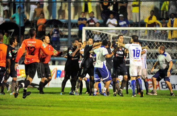 A confusão diminuiu as tentativas de boas jogadas e momentos de lucidez dos sistemas ofensivos, que passaram a jogar na base dos chutes e de chegadas duras nos rivais. O lateral Walber entrou no segundo tempo e, em menos de cinco minutos, foi expulso, após entrada forte de carrinho no goleiro Leandro, que ocupou a vaga deixada por Adriano, no Águia.