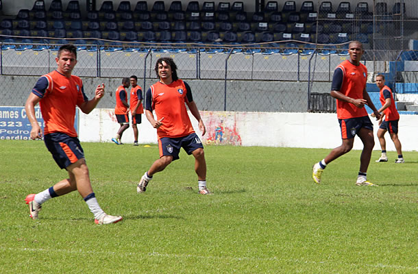 O Leão Azul iniciou o coletivo de ontem com dois zagueiros (4-4-2). Recuperado de uma pancada no pé direito, o lateral-esquerdo Berg formou a defesa ao lado de Endy, na latarel direita, além de Zé Antônio e Carlinho Rech. No meio-campo, Araújo escalou os volantes Nata e Jhonnatan ao lado dos apoiadores Clebson e Thiago Galhardo, que entraram no time com a missão de reforçar o controle da posse de bola no setor de criação. A dupla de ataque teve Leandro Cearense e Val Barreto.