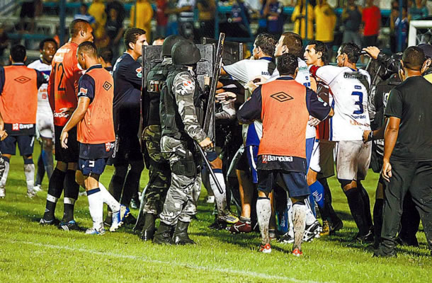 O segundo tempo não teve tantos gols quanto o primeiro, mas compensou com o número de expulsões: três. As duas primeiras ocorreram por volta dos 20 minutos, quando Leandro Cearense e Adriano se envolveram em uma confusão que por pouco não se transformou em uma batalha campal no Zinho Oliveira. Após cobrança de escanteio, o atacante remista tentou tirar a bola do domínio do arqueiro, que estava caído no gramado. Adriano reagiu e os demais jogadores do Águia, incluindo os do banco de reservas, partiram para cima de Leandro Cearense.