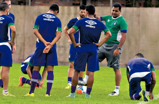 Leston Júnior orienta os jogadores antes de iniciar o treino