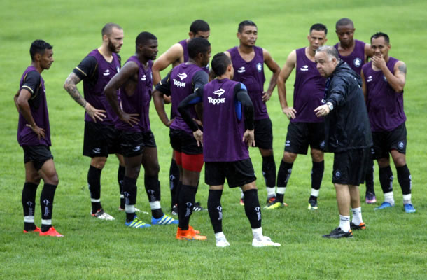 Josué Teixeira orienta os jogadores antes de iniciar o treino