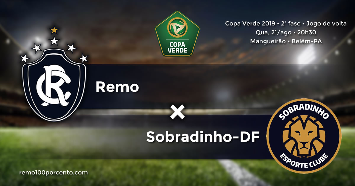 Remo e Sobradinho (DF) duelam nesta quarta-feira (21/08), a partir das 20h30, no estádio Mangueirão. A partida é válida pelas oitavas de final da Copa Verde 2019, jogo de volta. No primeiro duelo, o Leão foi derrotado por 1 a 0.