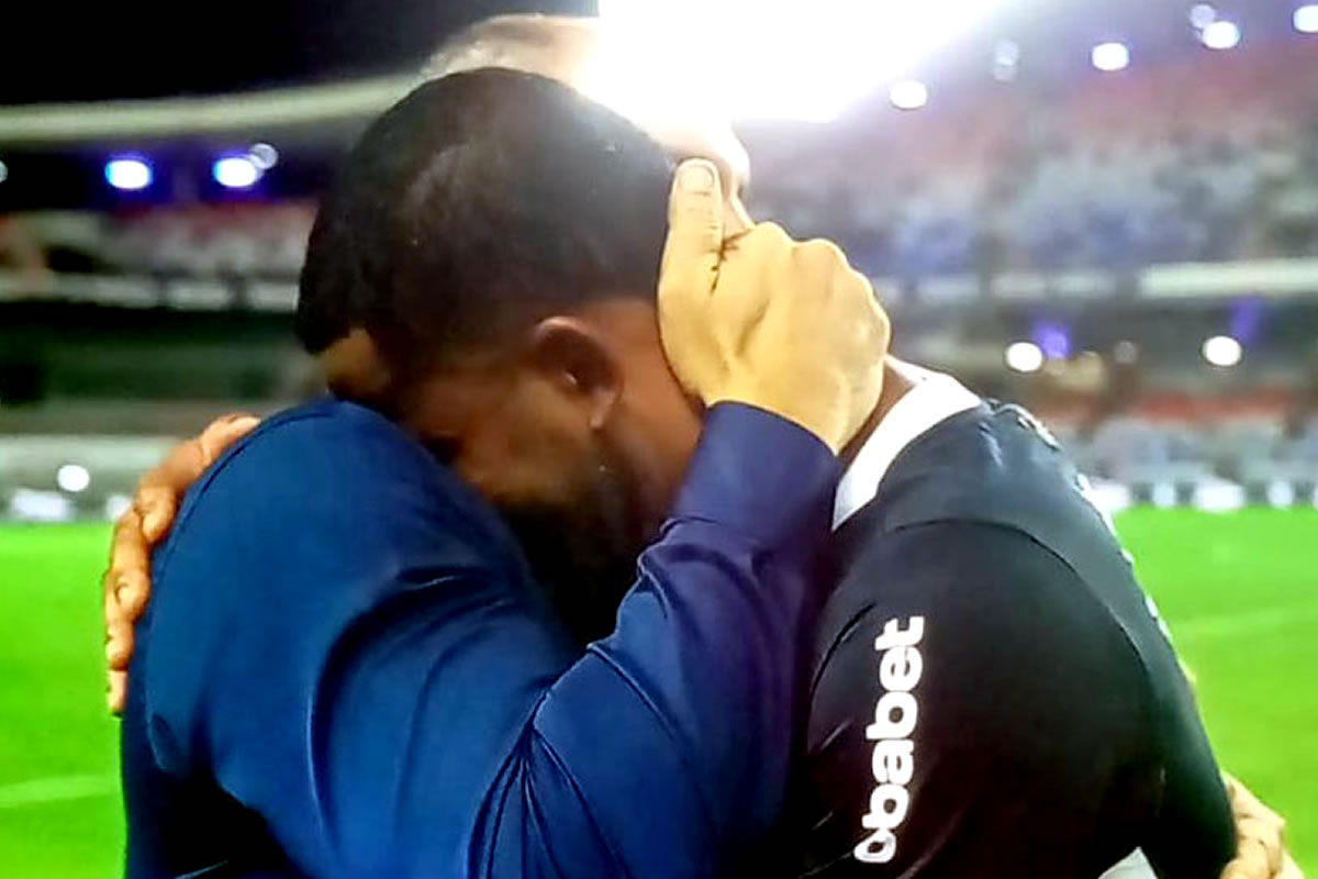 Após o apito final, o lateral-esquerdo Jorge não conteve a emoção e caiu no choro ainda no gramado do Mangueirão. O jogador foi amparado pelo executivo de futebol Marcos Braz, que apostou em sua contratação e acompanhou de perto seu retorno aos gramados.