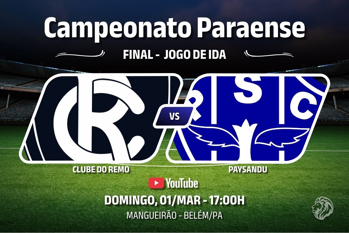 O futebol paraense terá um grande confronto neste domingo (01/03). Remo e Paysandu se enfrentam a partir das 17h, no Mangueirão, em Belém, valendo pela partida de ida da final do Parazão 2026, prometendo fortes emoções.