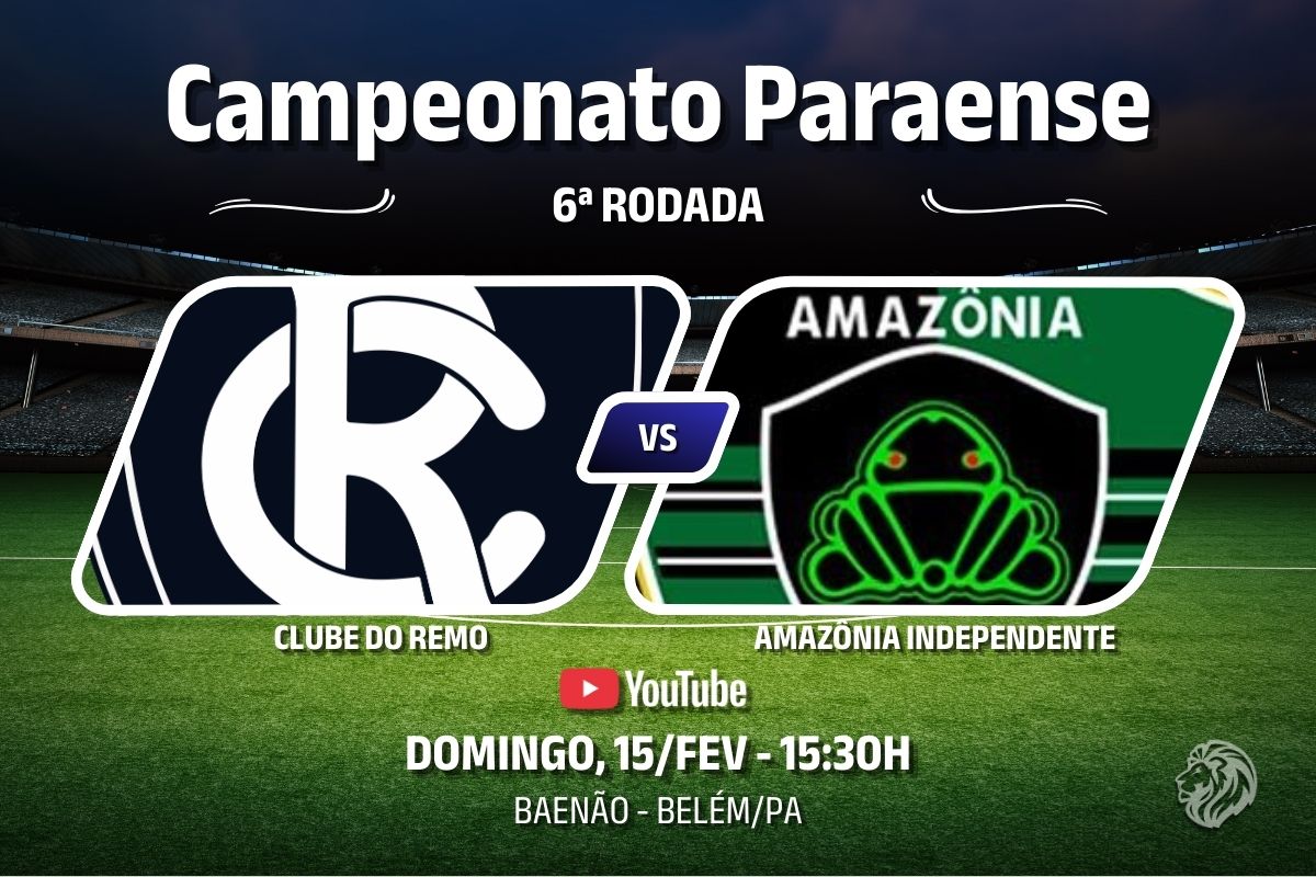 O futebol paraense terá um grande confronto neste domingo (15/02). Remo e Amazônia Independente se enfrentam a partir das 15h30, no Baenão, em Belém, valendo pela 6ª rodada do Parazão 2026, prometendo fortes emoções.